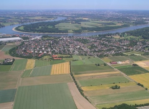 Es liegt zwischen den Städten Köln und Düsseldorf direkt am Rhein.