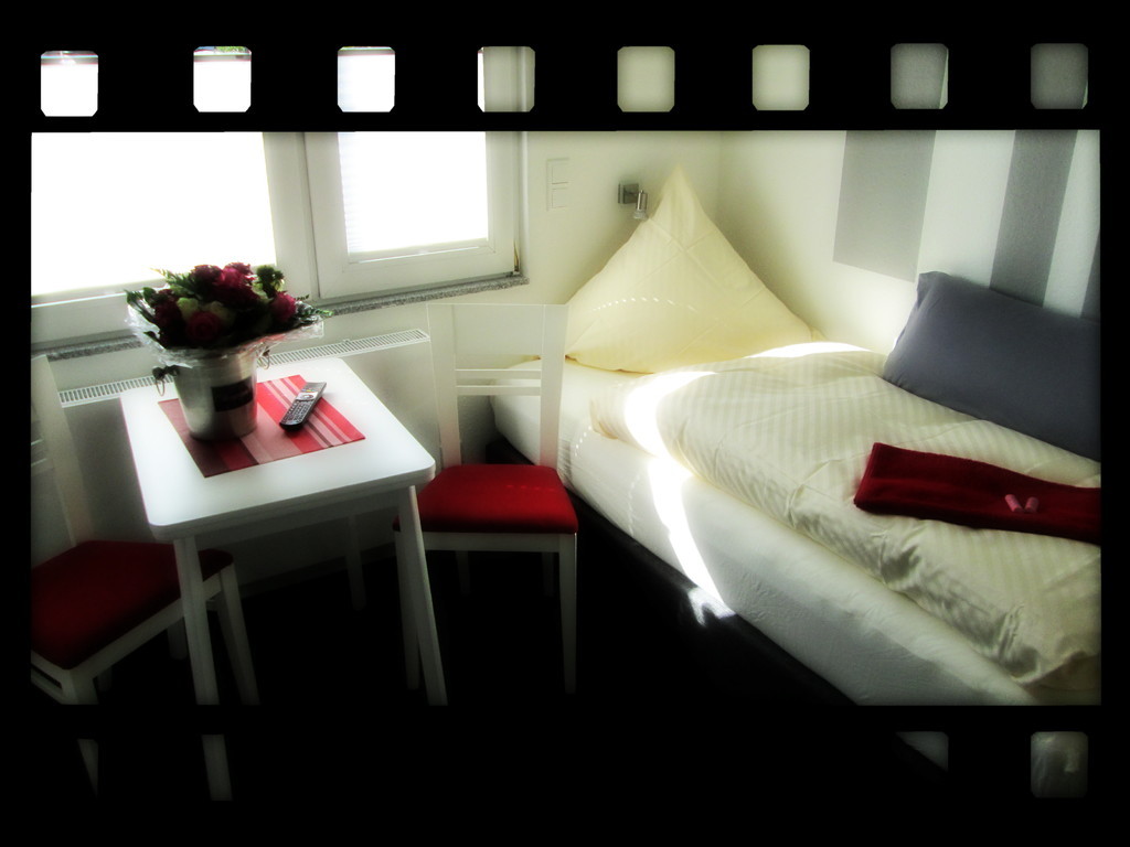 Dieses Zimmer ist 2013 neu hinzugekommen und ist mit einer kleinen Einbauküche, Sat-TV, Dusch Bad und für einen erholsamen Schlaf in Boxspringbetten ausgestattet.
